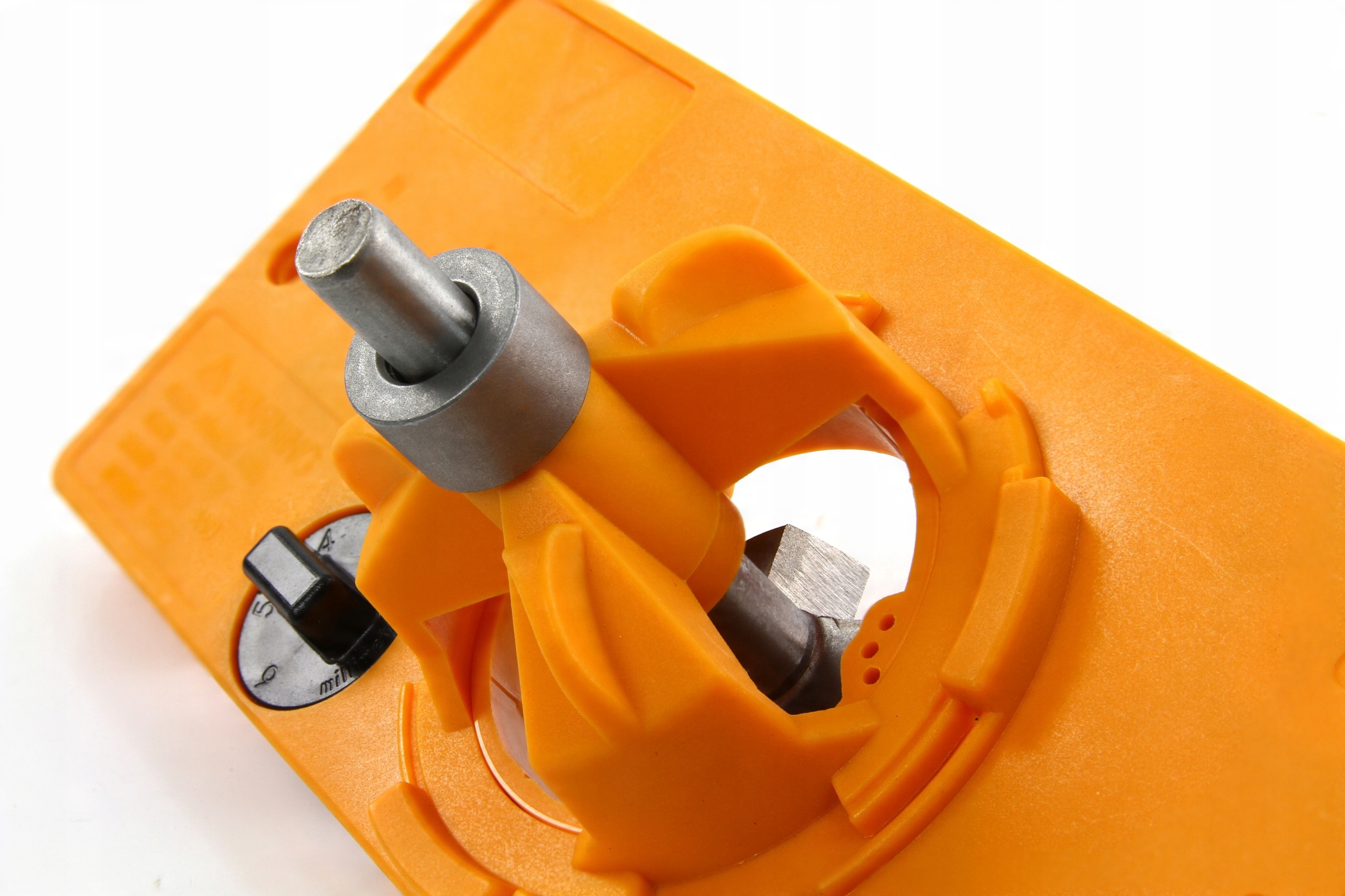 Шаблон включает в себя сверло с твердосплавным наконечником, которое каждый раз сверлит на идеальную глубину благодаря включенному в комплект ограничителю глубины.
