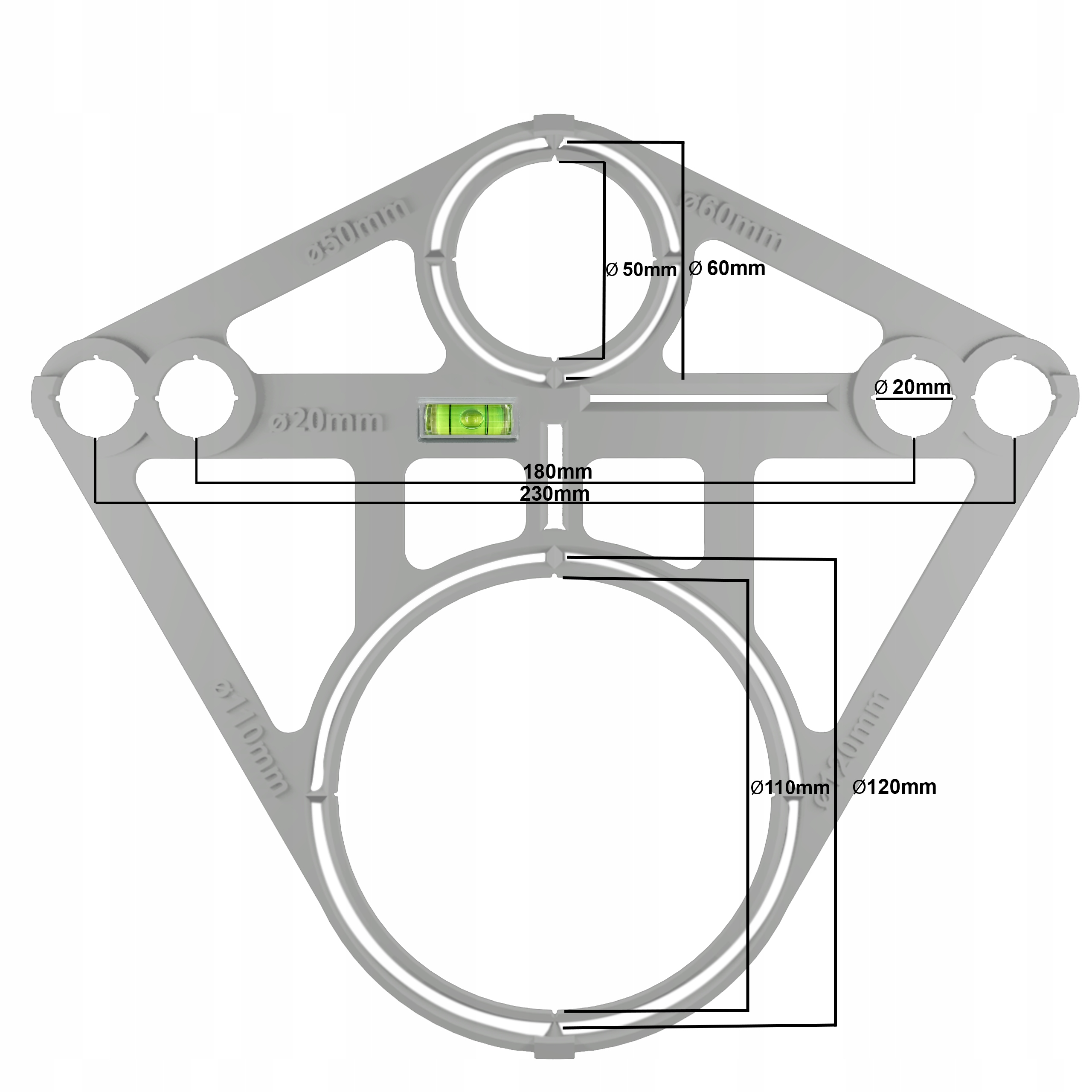 - ✅ Разнообразие отверстий: имеет отмеченные отверстия с диаметрами 20 мм, 50 мм, 60 мм, 110 мм и 120 мм, идентификация и применение.