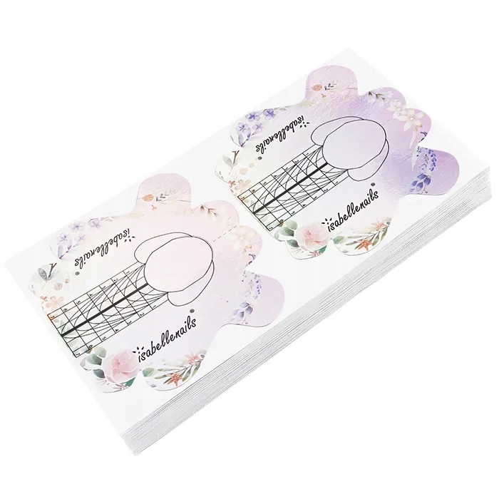 Точный масштаб упрощает работу. Шаблоны хорошо прилегают к ногтю, характеризуются оптимальной твердостью и высокой адгезией клея.