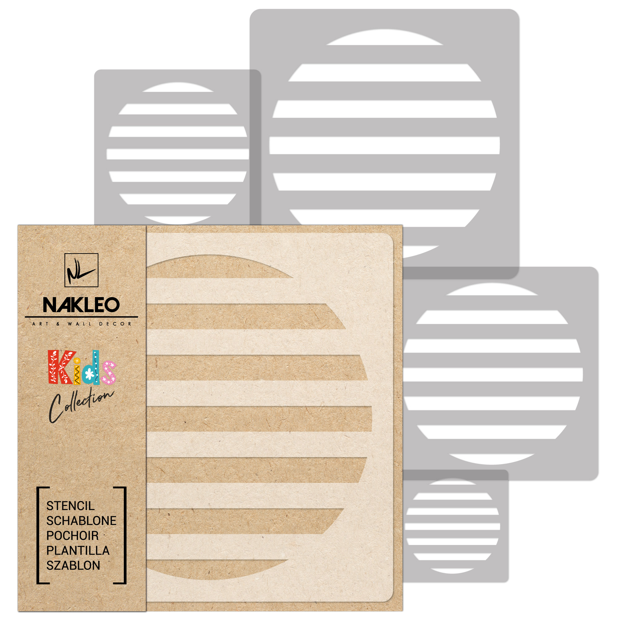 Серия Nakleo Kids Collection сделает комнату вашего ребенка самым уникальным местом в доме. Каждый набор трафаретов в этой коллекции состоит из пяти листов разных размеров — от 34x34 см до 9x9 см, поэтому вы можете подогнать размер узора под индивидуальные нужды декорирования. Трафареты изготовлены из прочного, полупрозрачного материала, благодаря чему их можно использовать многократно, что является прекрасной альтернативой дорогим обоям.