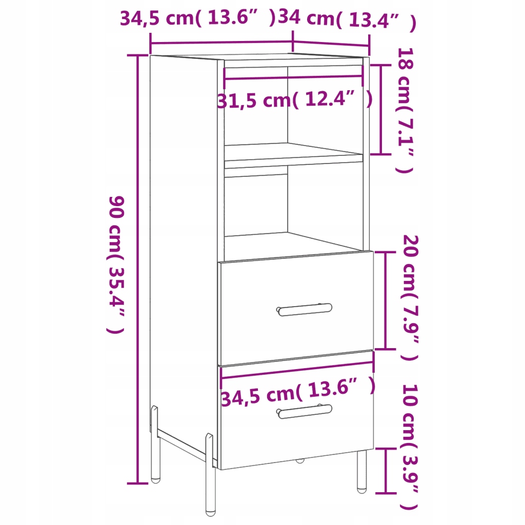 - Общие размеры: 34,5 х 34 х 90 см (Д). x Ш x высота)