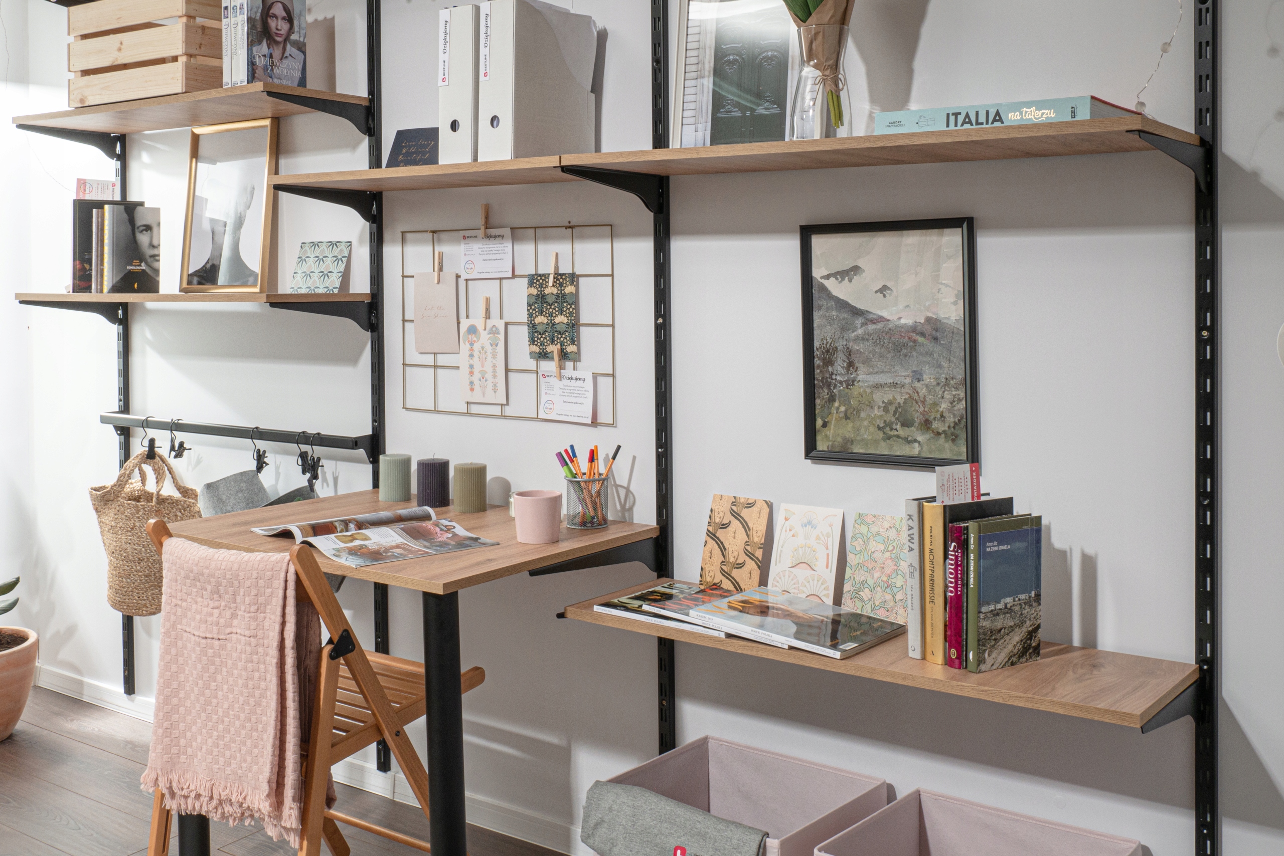 Большое преимущество этой системы заключается в его универсальности, оборудование можно заменить на другие элементы (полки, вешалки и т. д.) в зависимости от возникающих потребностей. Легко собирать мебель.