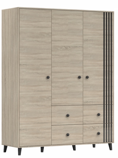 Мебель для комнаты подростка должна быть стильной и отвечать вкусам подростка, но, прежде всего, она должна быть практичной. Вот так выглядит трехдверный шкаф с ящиками CAPRI. Внутри шкафа очень просторно, поэтому найдется место для одежды, игрушек и других вещей. С левой стороны шкафа четыре полки. В правой, более широкой части шкафа расположена штанга для одежды. Это идеальное место для хранения длинной одежды, такой как пальто, рубашки или куртки. Под них можно разместить обувь или рюкзаки. Выдвижные глубокие ящики предназначены для хранения нижнего белья.