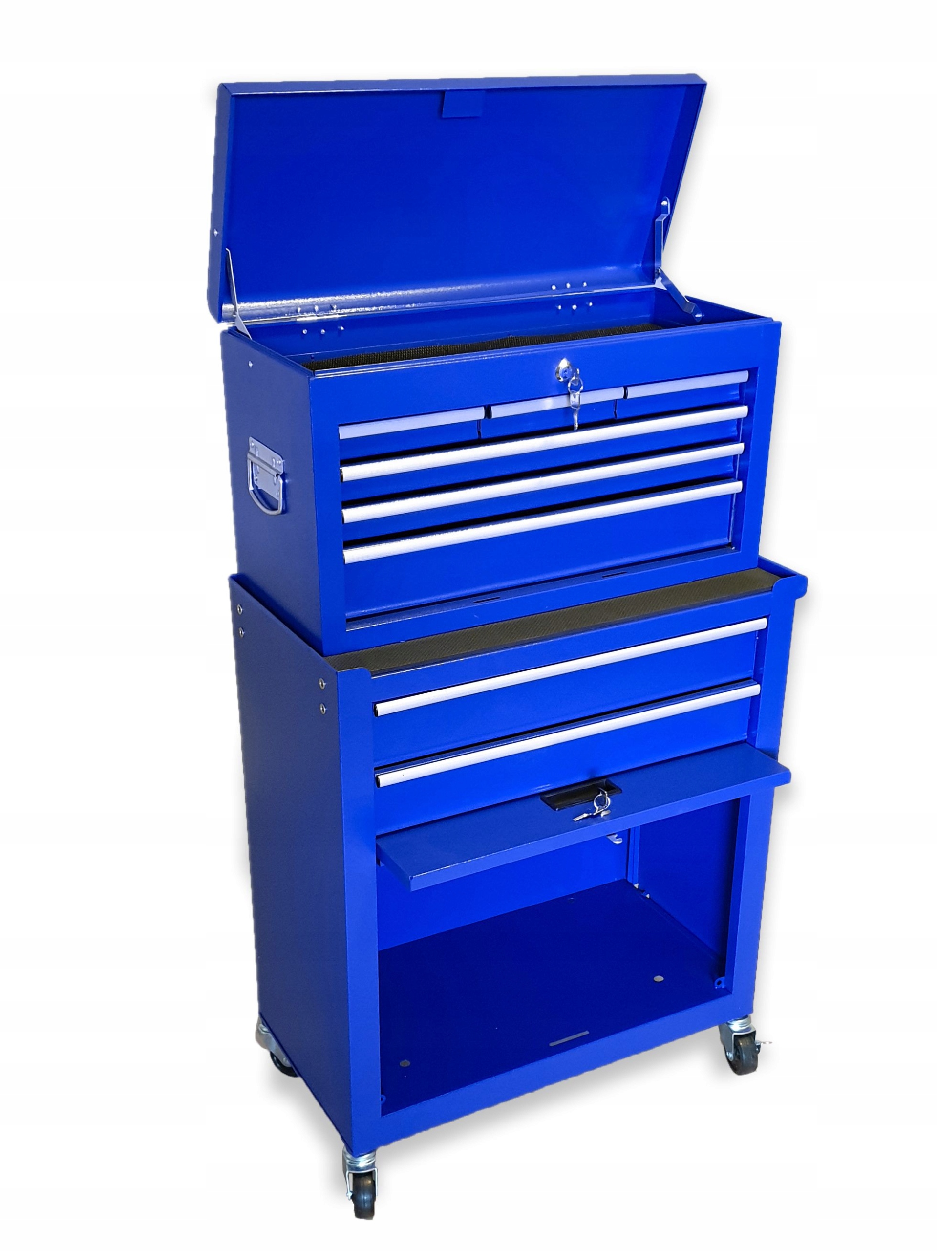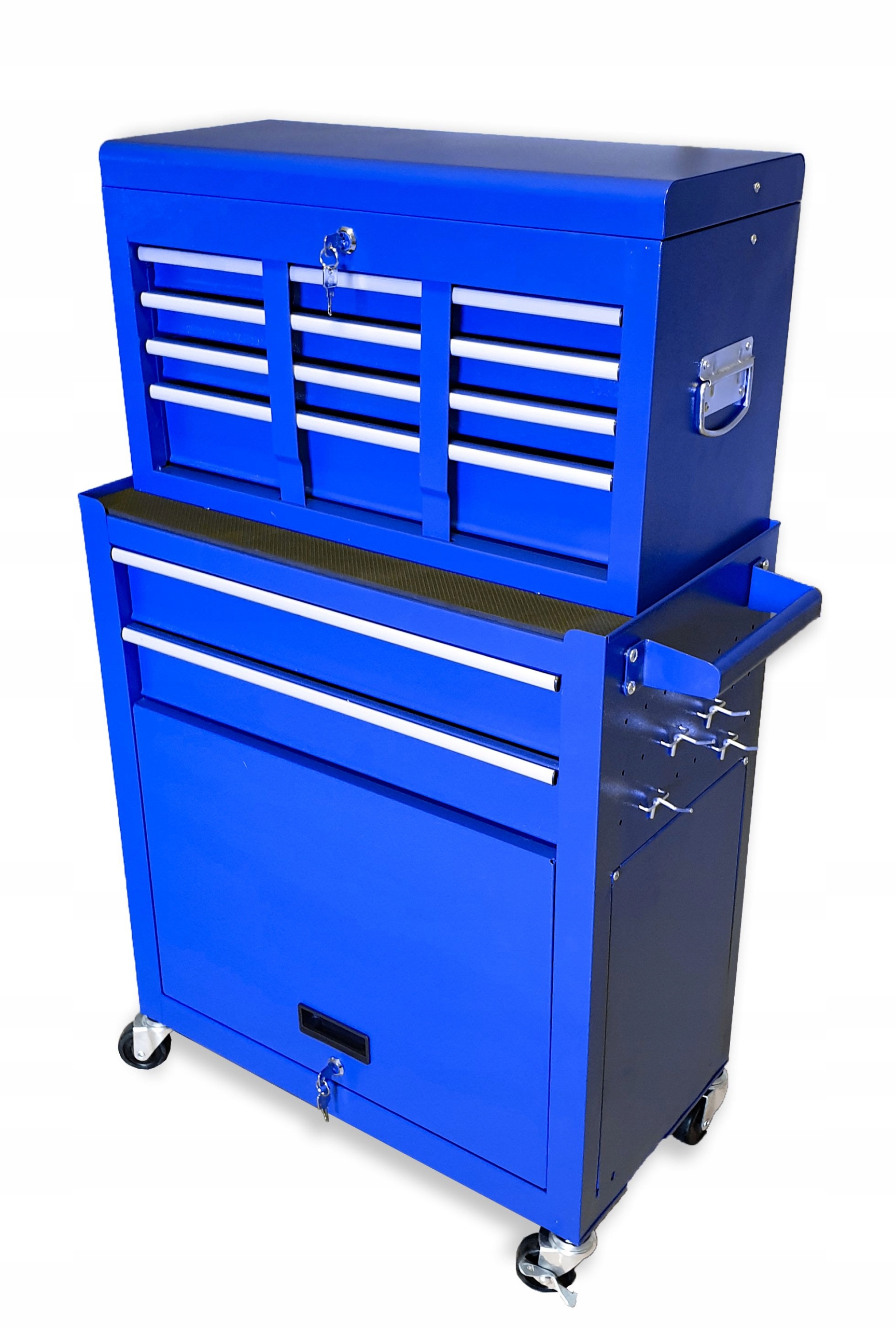 2 Тележка для инструментов, шкаф для мастерской с 8 ящиками и 2 отделениями, синий. Высококачественная инструментальная тележка, идеально подходящая для автосервисов и гаражей. Коляска абсолютно новая, в оригинальной упаковке. Все ящики открываются очень легко. В каждом ящике имеется противоскользящий коврик.