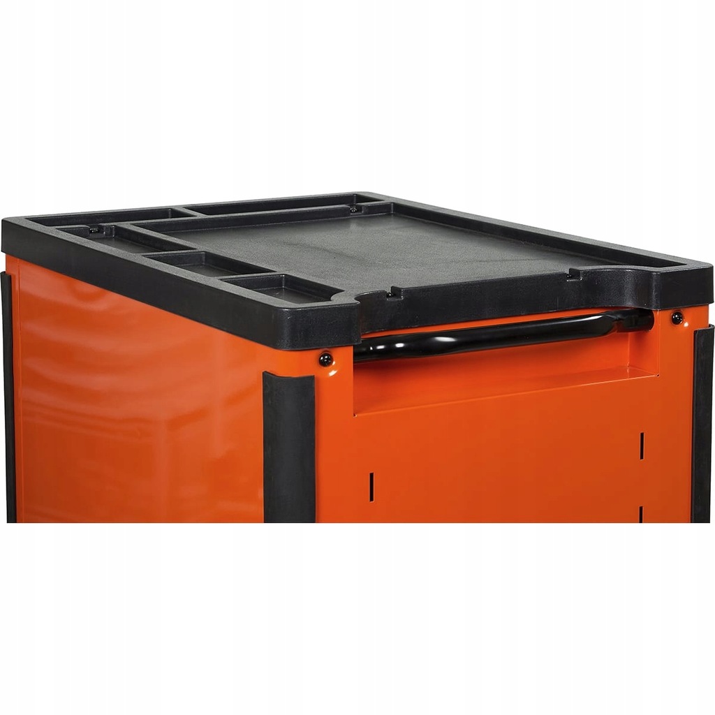Шкаф для инструментов имеет противоскользящую столешницу с 5 отделениями для мелких предметов, что позволяет использовать тележку в качестве передвижная мастерская.