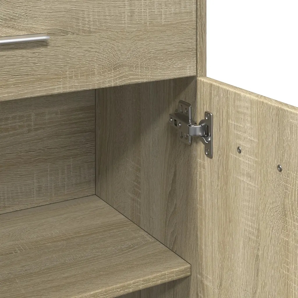 Этот элегантный шкаф для ванной комнаты Sonoma Oak - важное дополнение к вашей ванной комнате, обеспечивая аккуратный и эффективный вид!