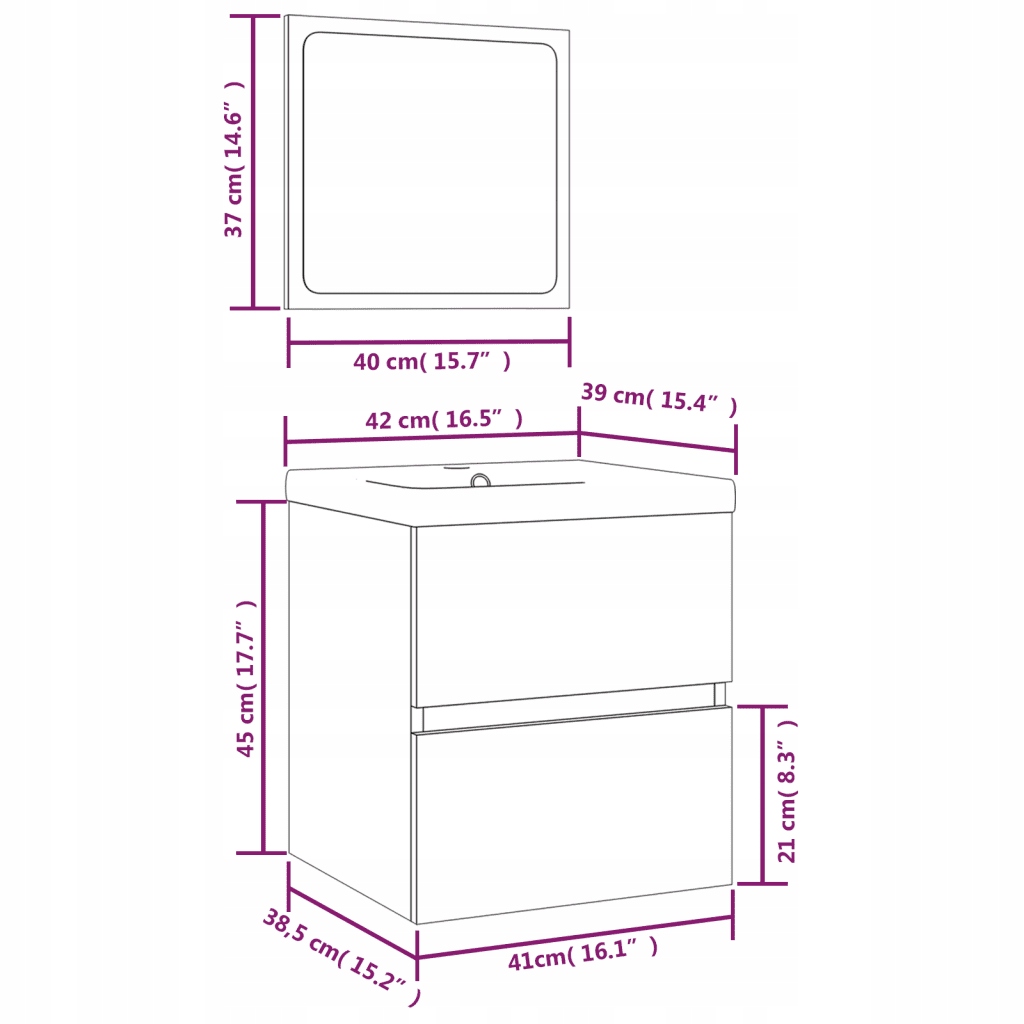 Шкаф для ванной комнаты Vidaxl с раковиной и зеркалом, дуб Сонома