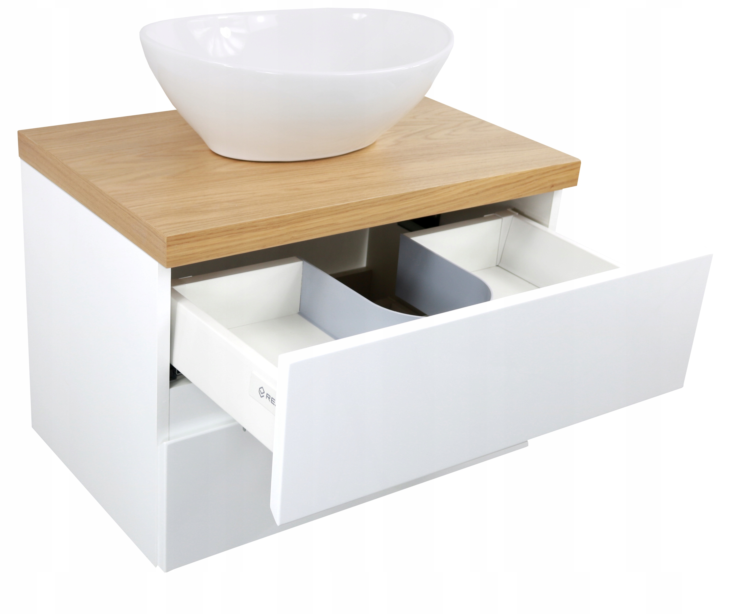 ШКАФ ДЛЯ ВАННОЙ С ДЕРЕВЯННОЙ ВЕРХНЕЙ! 60 СМ | БЕЛЫЙ ГЛЯНЦЕВЫЙ ЛАК