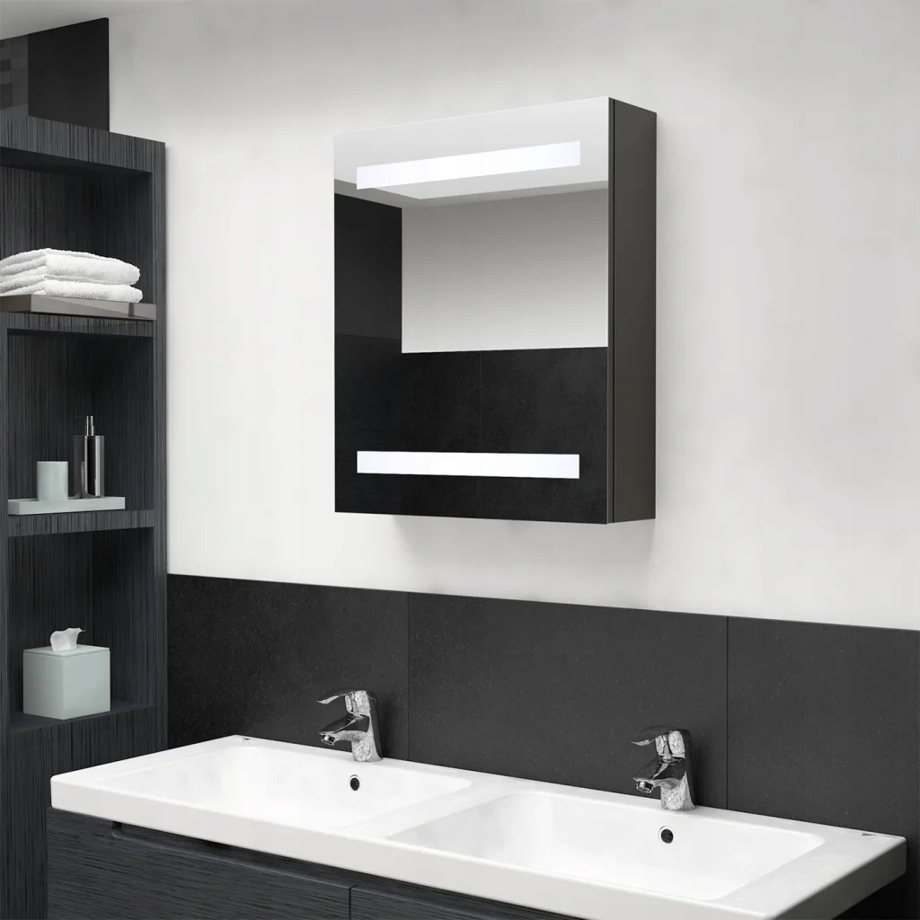 Шкаф для ванной комнаты с зеркалом и светодиодным 50x14x60 см, антрацит