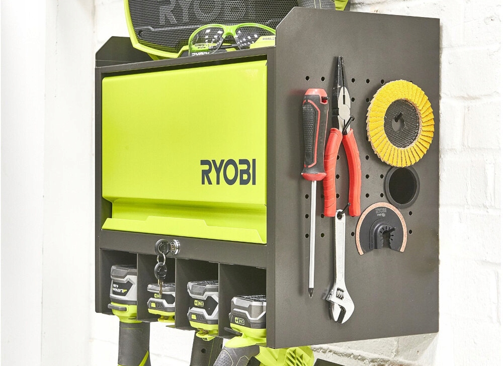 Шкаф для инструментов RYOBI RHWS-01 — это проверенное оборудование, которое пригодится в любом домашнем гараже или мастерской. Шкаф предназначен для подвешивания, поэтому вы можете использовать свободное пространство на стене. Шкаф спроектирован таким образом, чтобы можно было использовать каждый элемент. Его вес составляет 8,68 кг.