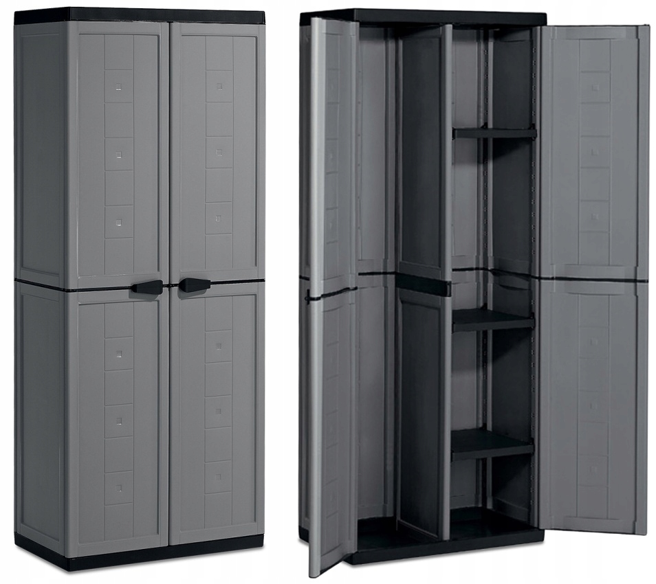 Многофункциональный шкаф Jolly – идеальное решение для подсобных помещений, таких как прачечная, сушильная комната, кладовая, подвал или гараж, но не только это. Модель, отличающаяся элегантной и минималистской отделкой, прекрасно подойдет в качестве практичного места для хранения садовых принадлежностей и инструментов. Для изготовления шкафа Jolly использован пластик высочайшего качества, что делает его очень прочным. Внутреннее пространство шкафа разделено на два отделения, одно из которых оснащено тремя регулируемыми полками. Каждый из них вмещает до 10 кг всевозможных предметов повседневного обихода. Регулируемые на нескольких уровнях полки позволяют подогнать конструкцию под индивидуальные нужды, что значительно повышает комфорт использования мебели. Одним из многих преимуществ представленной модели являются эргономичные двойные ручки, обеспечивающие удобный и надежный захват, которые можно дополнительно закрепить навесным замком. Гардероб Jolly впечатляет простотой сборки и современным дизайном. Модель доступна в сером и черном цвете.