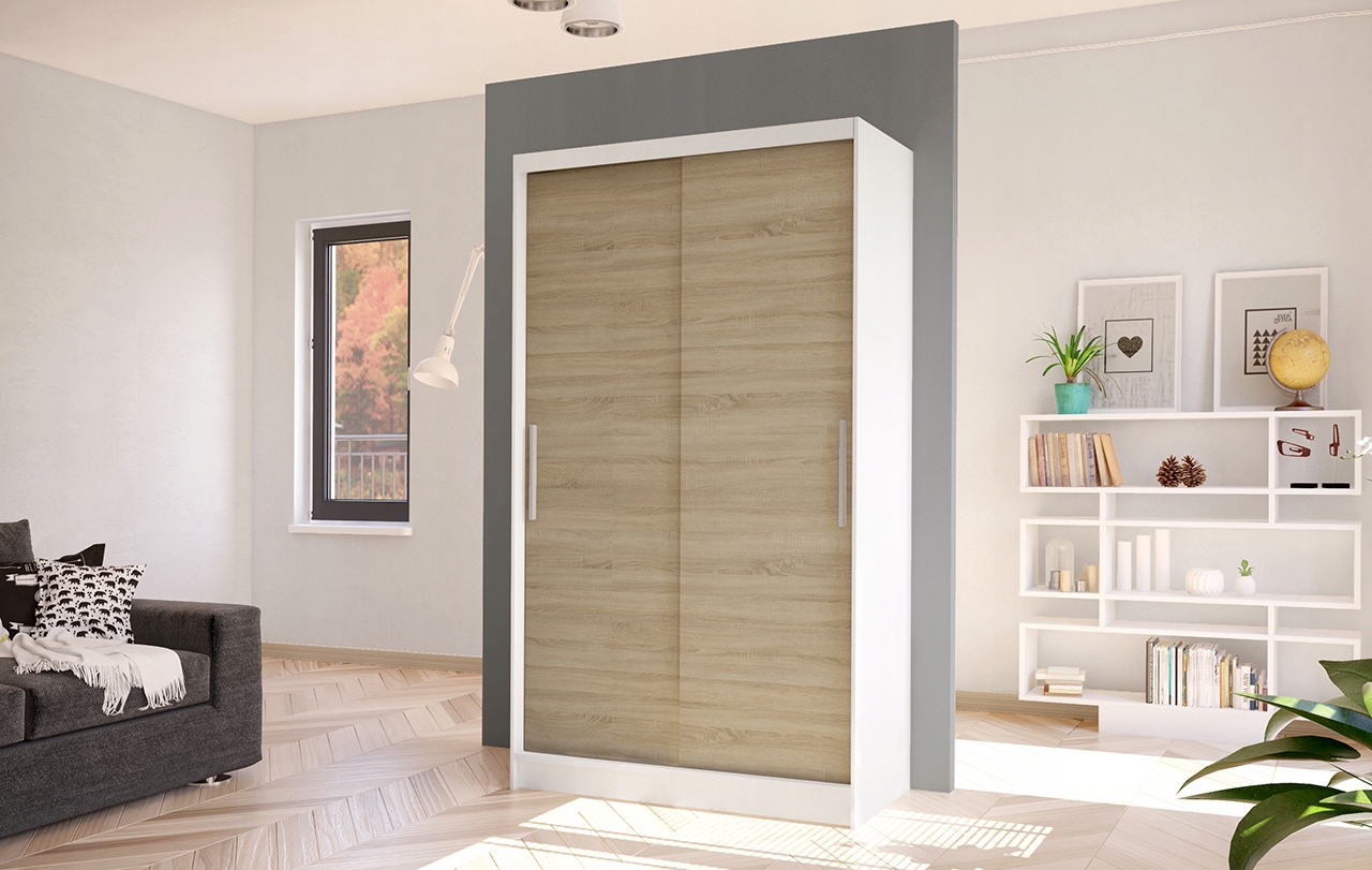 Двухдверный шкаф с системой раздвижных дверей, облегчающий повседневное использование. Современный, функциональный и элегантный. Предназначен для безопасного хранения одежды и других личных вещей. Идеально подходит для спальни, гостиной или зала.