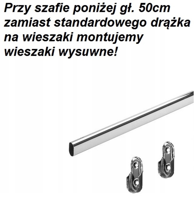 - Вешалка выдвижная или штанга для вешалок из хромированного металла с набором прочных металлических подвесок
