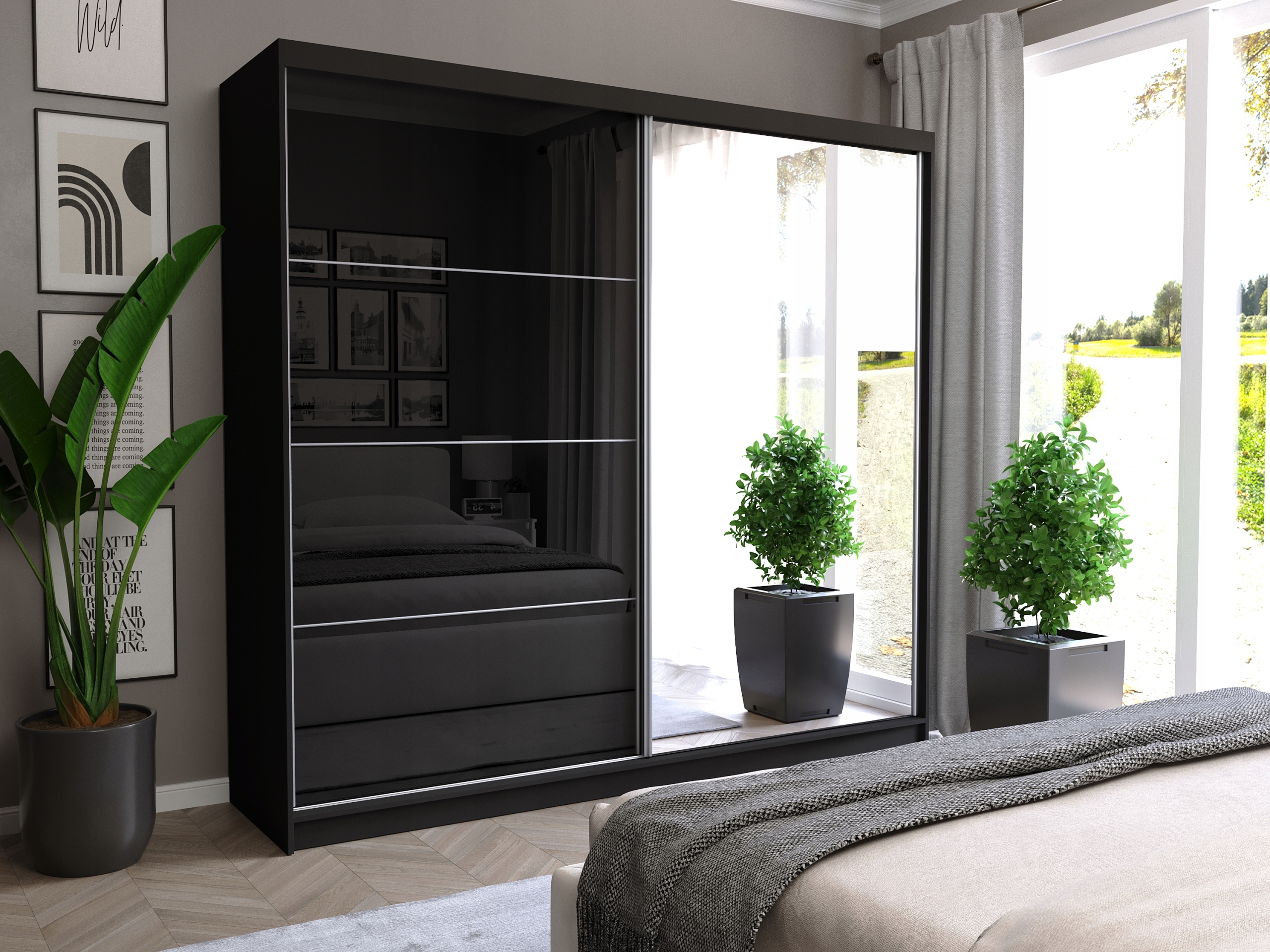 Шкаф-купе Selvio III 233 см – стильное и практичное решение для любой спальни или гардеробной. Сочетание с элегантным белым стеклом и зеркалом спереди придает мебели современный и роскошный характер.
