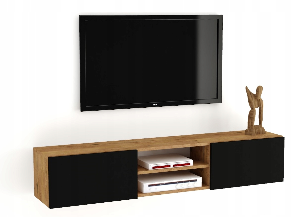 Подвесной шкаф под телевизор - ДУБ ЛАНСЕЛОТ + ЧЕРНЫЙ - 140 см!!!