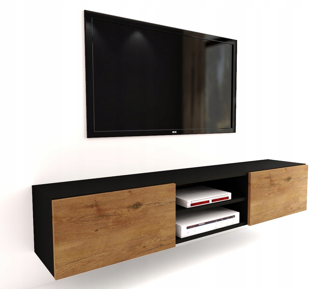 Подвесной шкаф под телевизор - ЧЕРНЫЙ + ДУБ ЛАНСЕЛОТ - 160 см!!!
