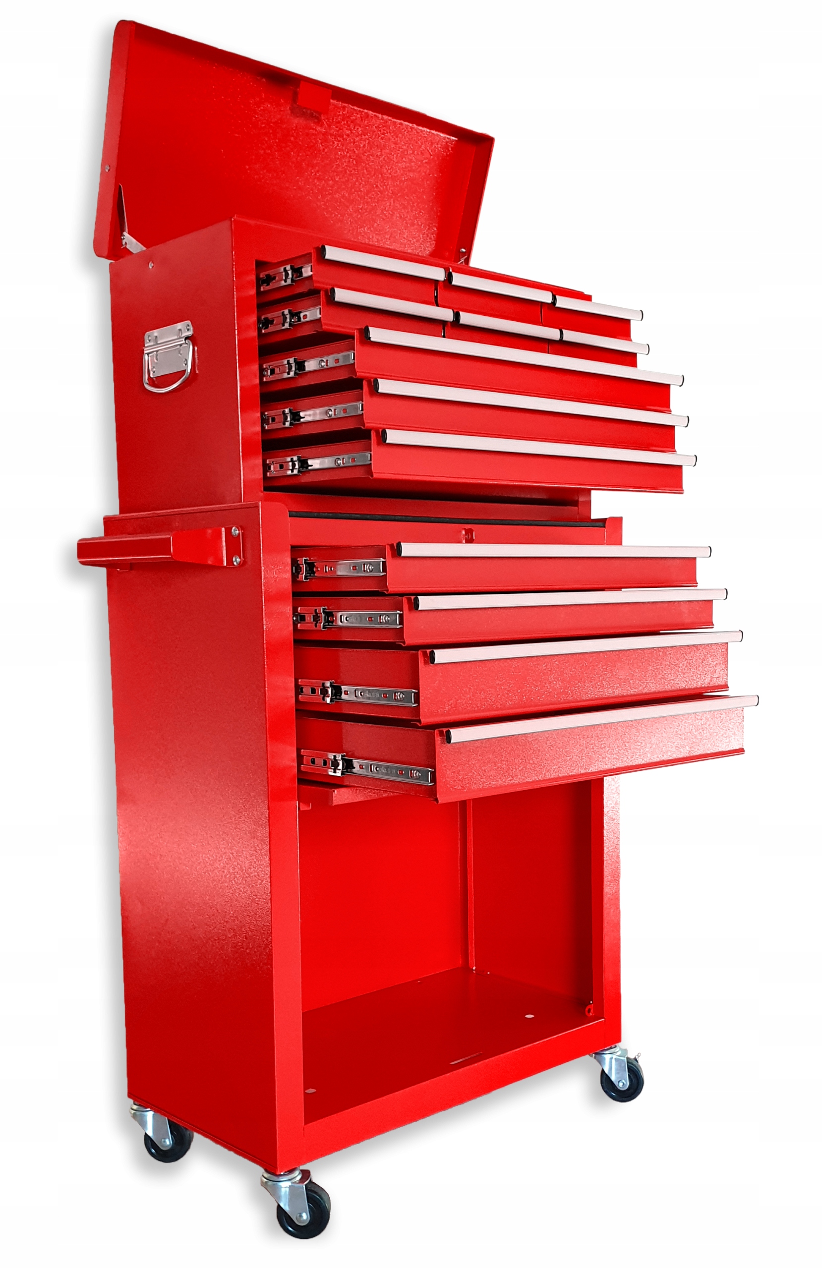 Тележка для инструментов - Шкаф для мастерской с 13 ящиками КРАСНЫЙ - ПОДНЯТЫЙ
