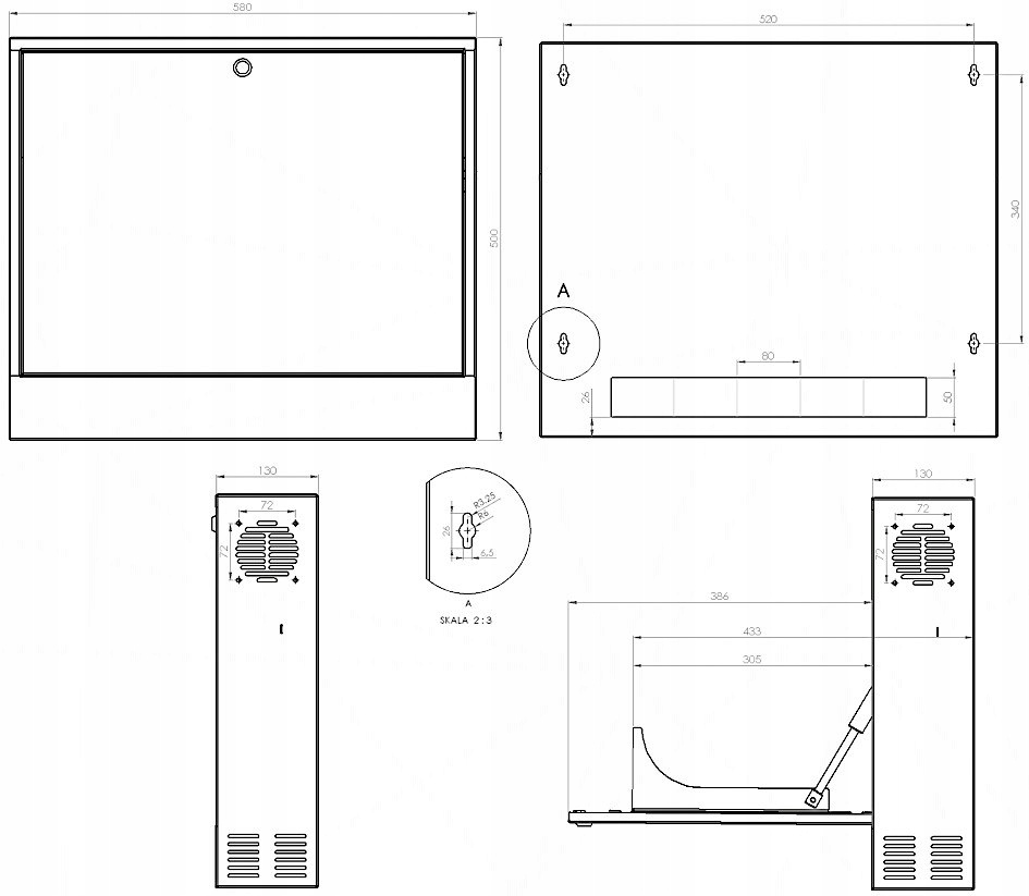Используемые в шкафу приводы замедляют процесс открытия передней крышки, имеющей направляющие для крепления устройств.