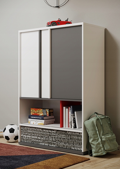 Шкаф однодверный с функциональным расположением полок и двумя вместительными и легкодоступными ящики. Он идеально подойдет как для комнаты девочки, так и для комнаты мальчика. Оригинальное сочетание белого цвета корпуса с энергичными красными ручками и инновационной серой пластиной с белыми надписями оживит любой интерьер. Преимущество коллекции – большое количество функциональных форм. «Философия» — это грамотно составленный комплект детской и подростковой мебели, рассчитанный на длительное использование.