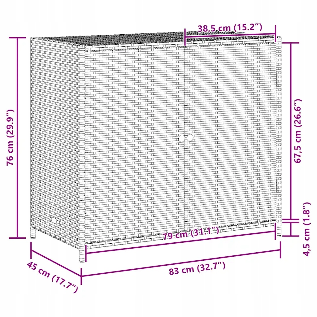 Садовый шкаф из серого ротанга 83x45x76 см