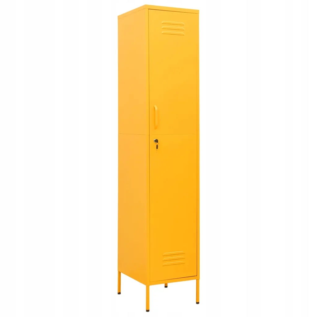 Запирающийся шкаф горчично-желтого цвета имеет современный дизайн, что делает его отличным декоративным дополнением к любой комнате или офисному помещению.