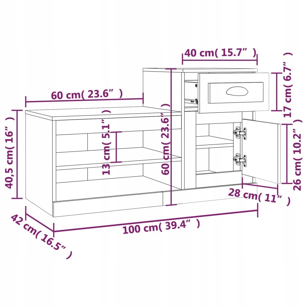 Шкаф для обуви, дуб Sonoma, 100x42x60см материал