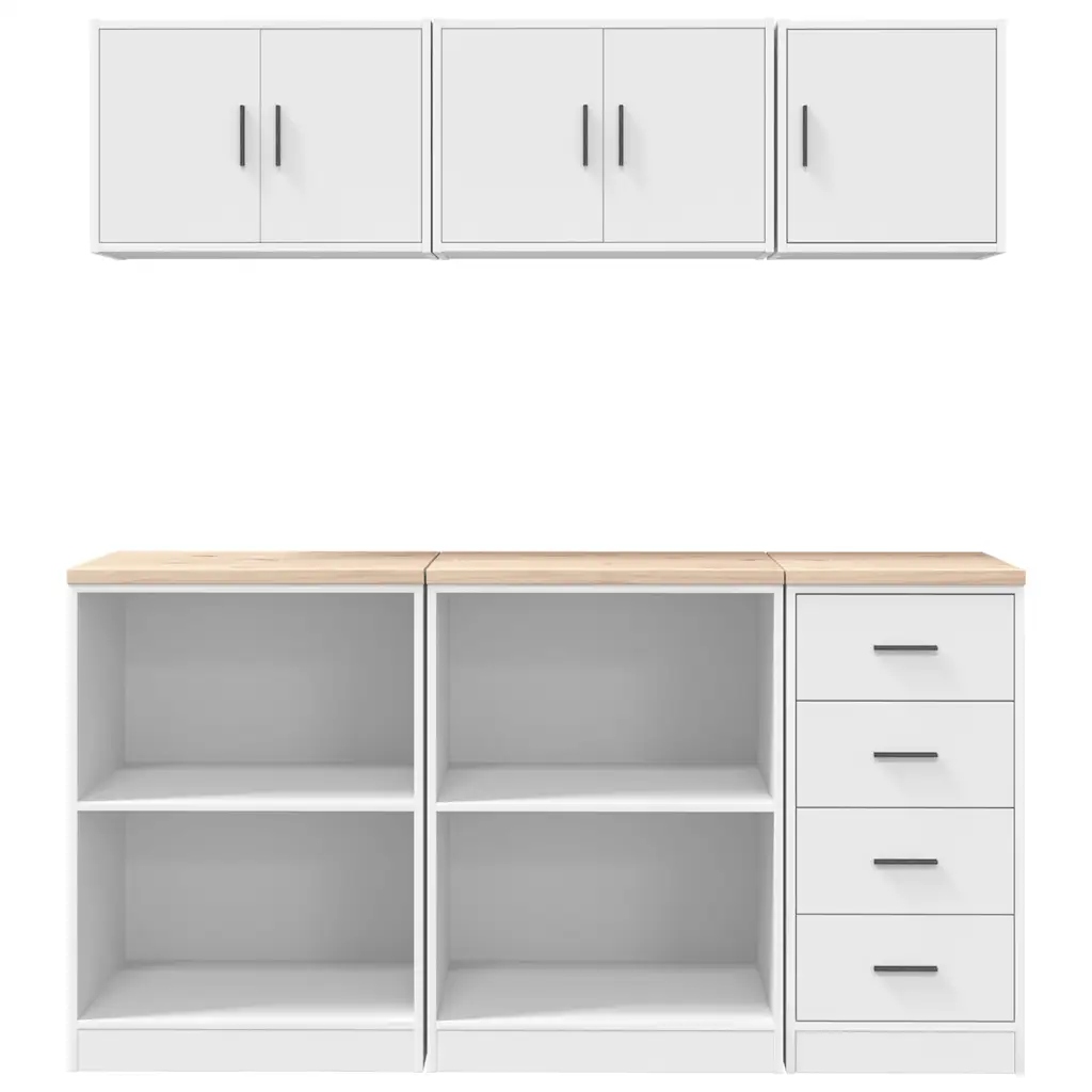 Гаражные шкафы 6 шт. Белое приклеенное дерево