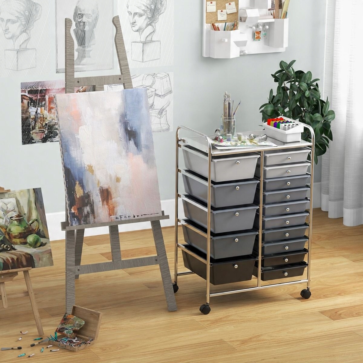 Тележка для хранения с 15 ящиками – идеальное решение для тех, кто ищет подходящее место для своих вещей. Эта практичная тележка с 5 большими и 10 маленькими ящиками предлагает достаточно места для хранения всех необходимых вещей. Надежный металлический каркас и прочные полипропиленовые ящики гарантируют, что эта тележка прослужит вам долгие годы.