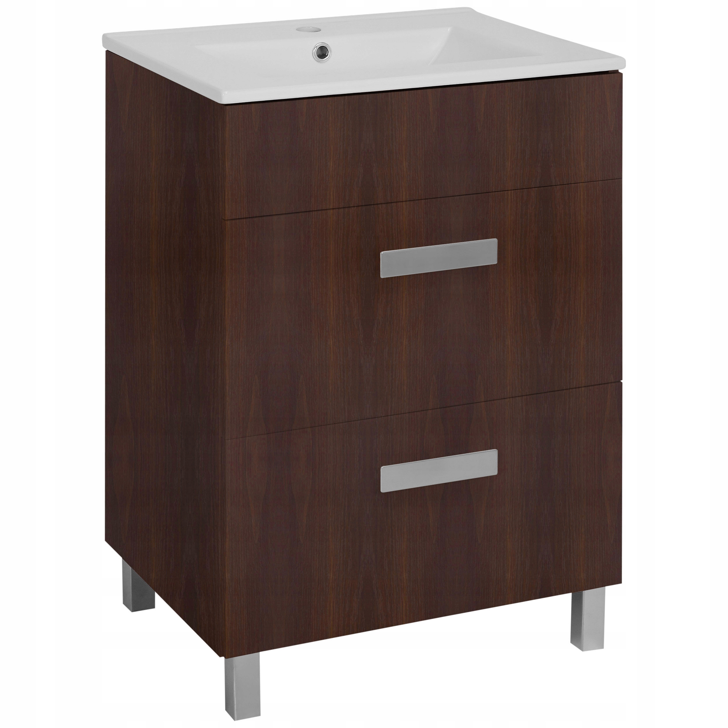 Шкафчик под умывальник из коллекции Karo – отличная идея, которая отлично впишется в любую ванную комнату. Мебель для ванной комнаты из этой коллекции отличается практичной планировкой и высоким качеством изготовления с использованием материалов высочайшего качества. Мебель тщательно изготовлена с вниманием к каждой мельчайшей детали. функциональность коллекции и ее современный дизайн не только помогут вам организовать пространство, но и украсят и освежат вашу ванную комнату. Два ящика позволят хранить необходимые вещи в ванной комнате. Благодаря шкафу ваша ванная комната теперь будет чистой и опрятной. Цвет ореха прекрасно впишется в любой интерьер, придав ему оригинальный характер. Шкафчик для ванной легко чистится, устойчив к влаге и благодаря использованию материалов высочайшего качества прослужит долгие годы.