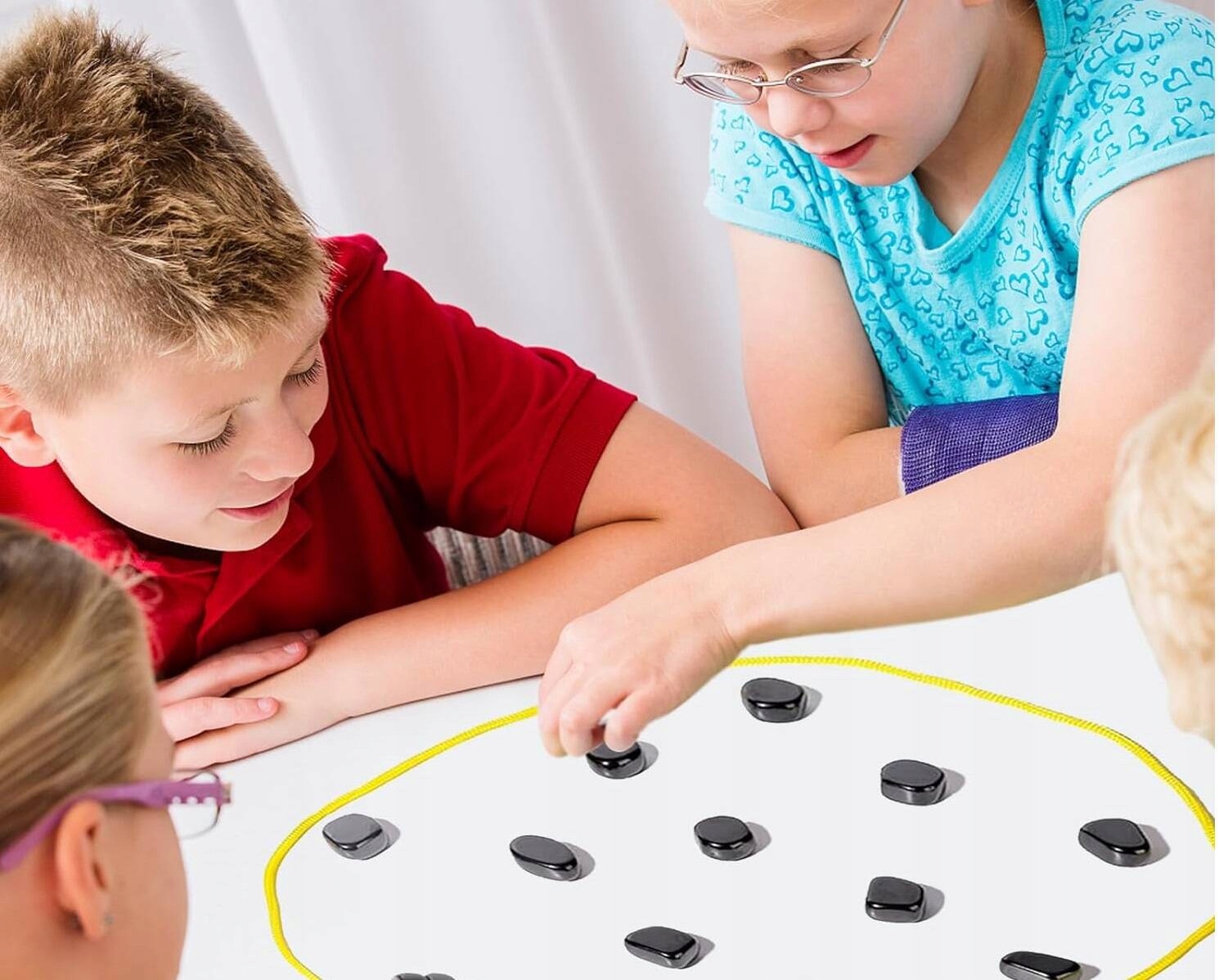 - Игра начинается, и игроки по очереди размещают по одному магниту в круг из веревки.