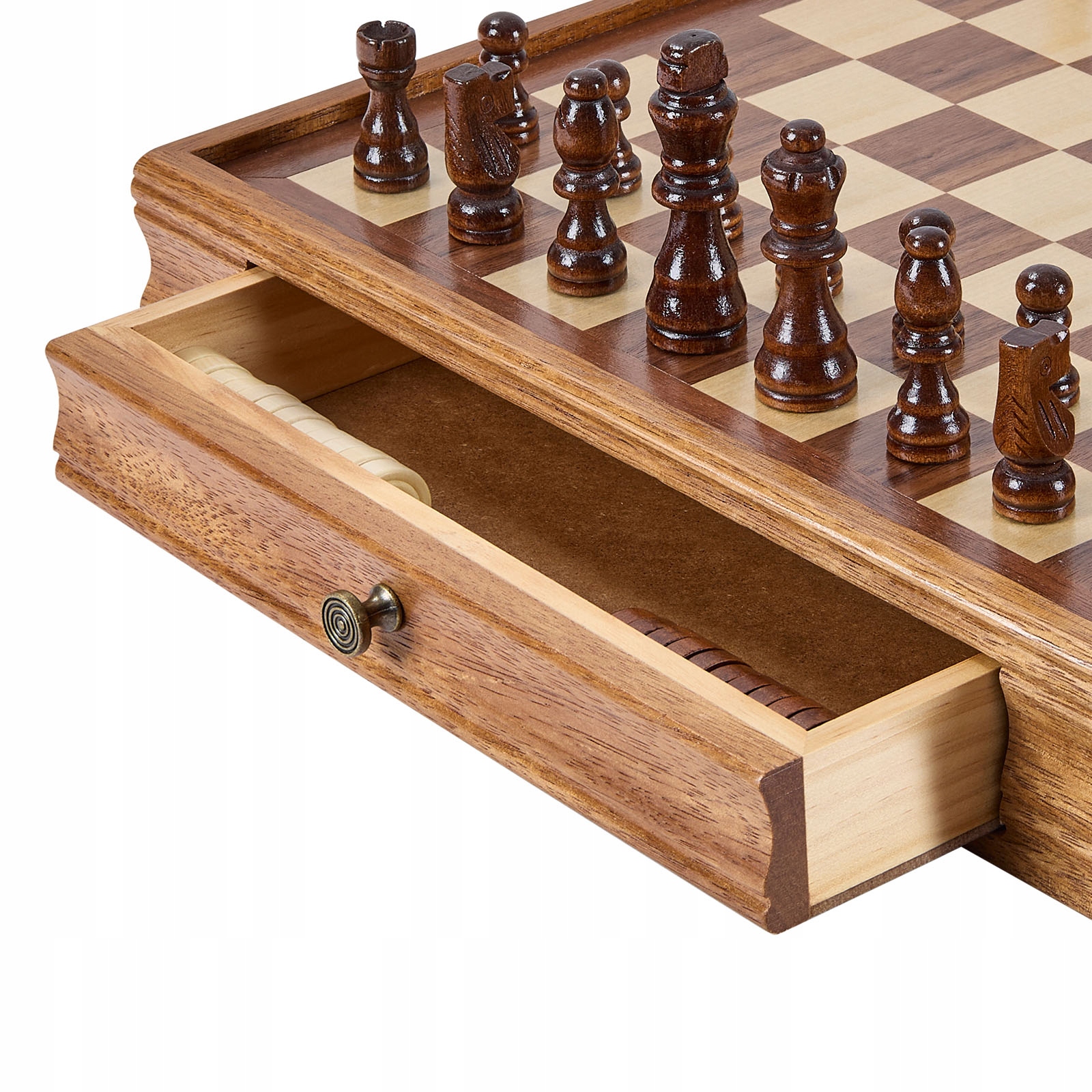 Набор шахмат из цельного дерева 2 в 1, шахматная доска 38 см для начинающих