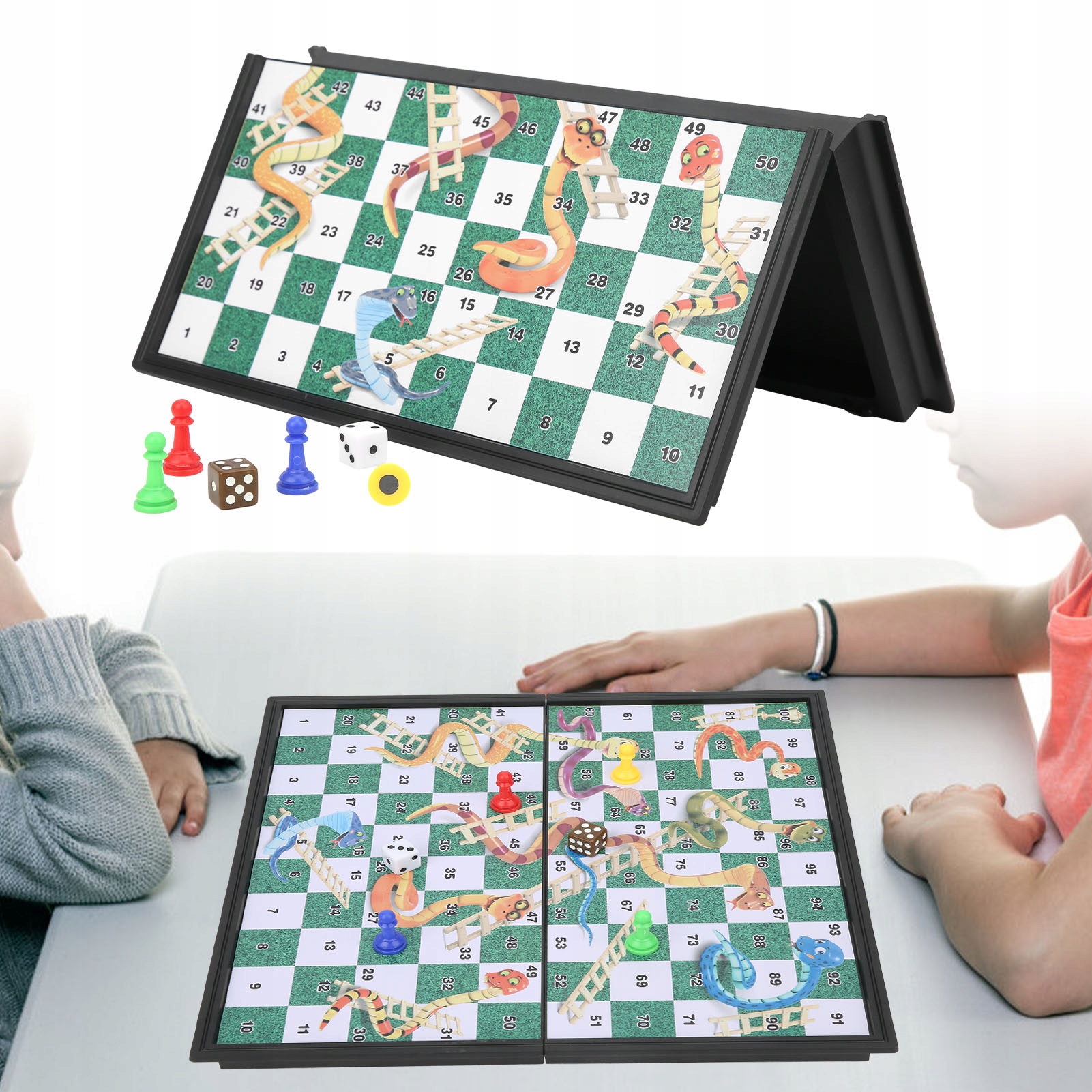 Особенность:1. Магнитная складная шахматная лестница в виде змеи, обучающая игрушка для семейной вечеринки. Идеальная игрушка для детских подарков на день рождения и студенческих наград.
