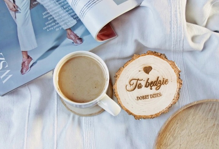 Подставка под кружку, чашку, изготовлена из спилка дерева с гравировкой