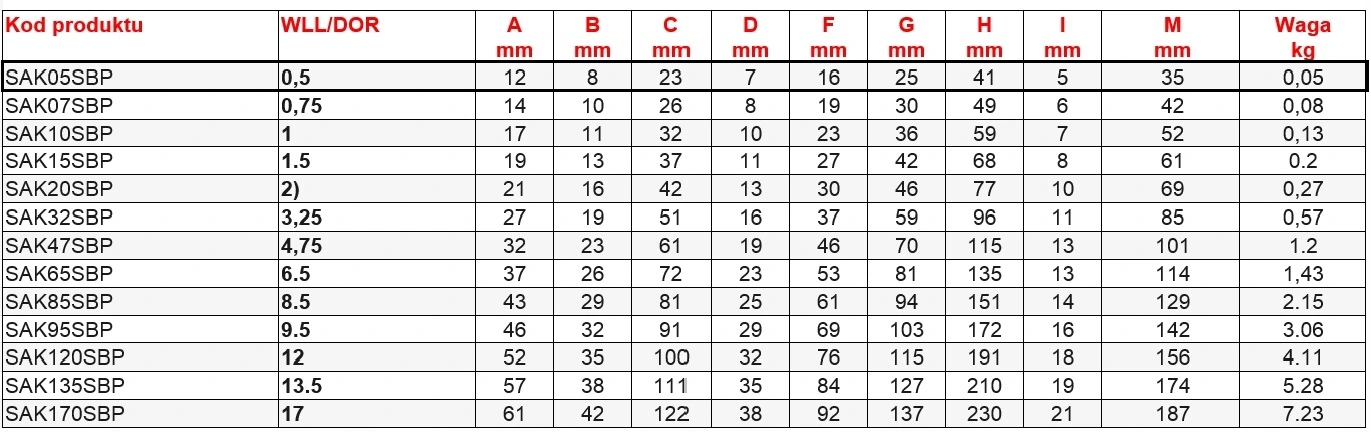 ТИП ПРОДОЛЬНОГО УДАРА: «U» DOR /WLL 0,5 тонны