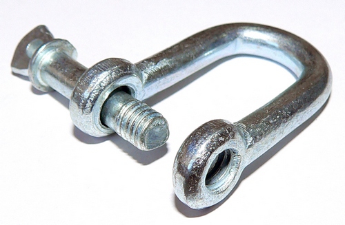 Скоба из оцинкованной стали в форме буквы «U», образующая замкнутый контур, открывающийся и закрывающийся винтом (штифт с резьбой, ввернутый в корпус). Один из самых распространенных способов крепления и соединения веревок с проушинами. Хорошо работает также при соединении такого оборудования, как крюк, талреп и т. д.