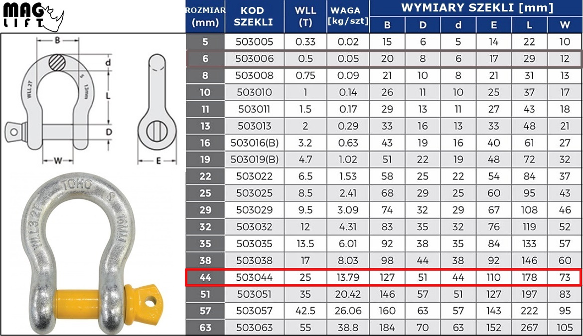 Shakel в соответствии с Din 82101 , диаметра 22m, максимальная сила 22-й, максимум 2-й. Shekla в соответствии с pn-en138889 с диаметром 22-миллиметрового болта имеет грузоподъемность 4,75 т.