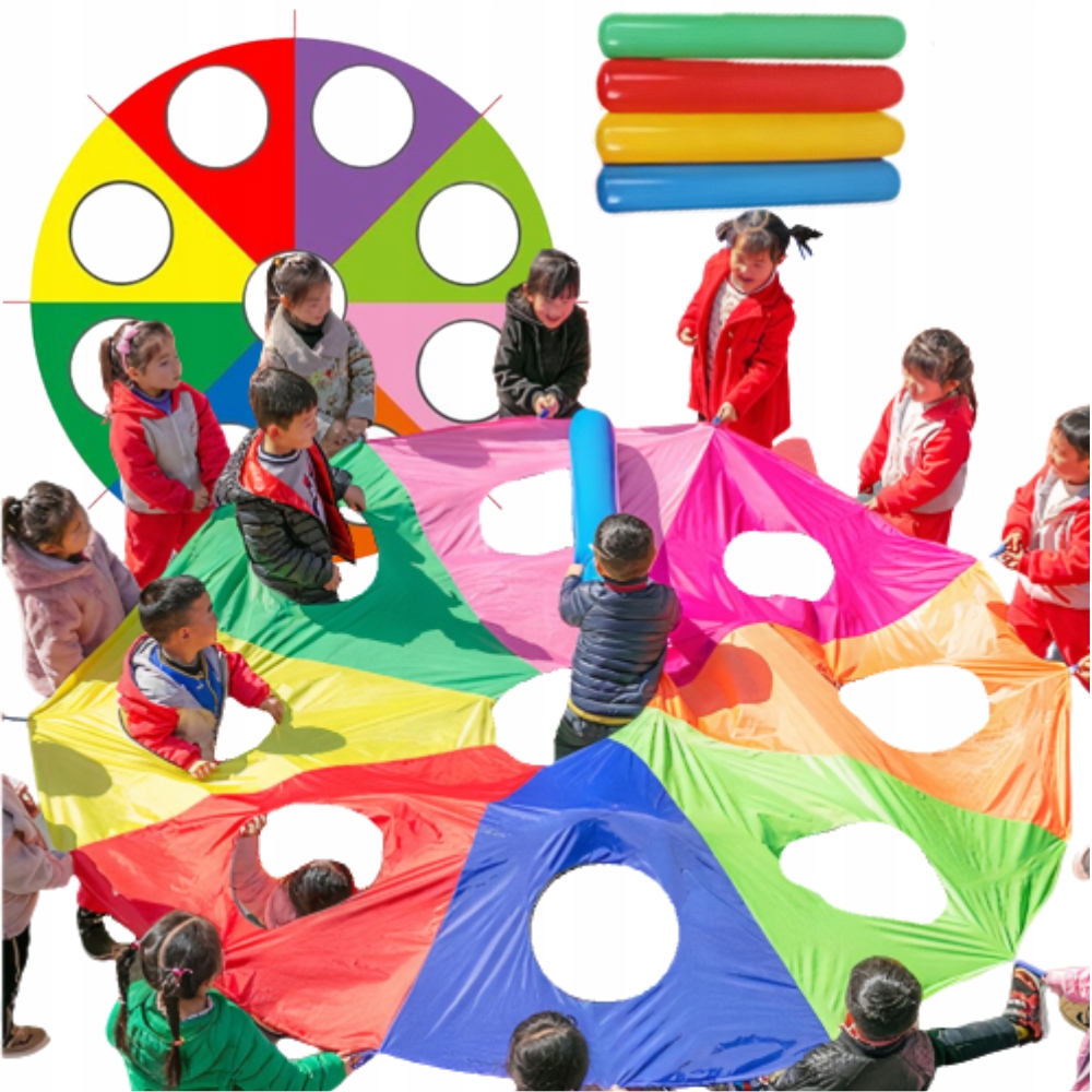 ⭐ Гарантированное удовольствие. Наши яркие парашюты отлично подходят для вечеринок, игр и развлечений, где дети весело проведут время, устраивая веселые пробежки или строя палатки, стимулируя их воображение и идеи.