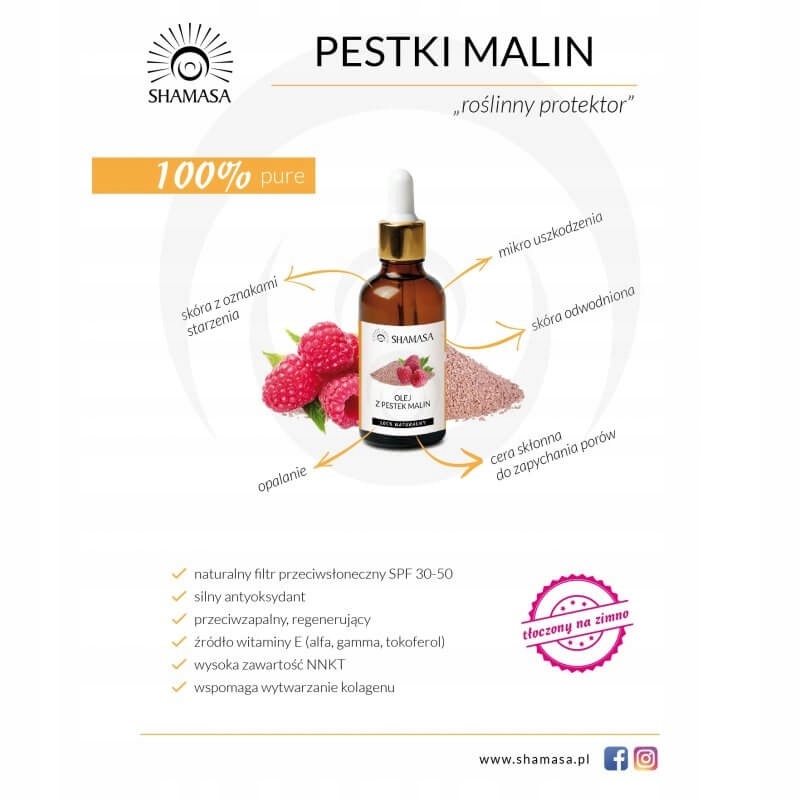 Shamasa Olej z pestek Malin 50 ml SPF 30-50 + Próbka GRATIS