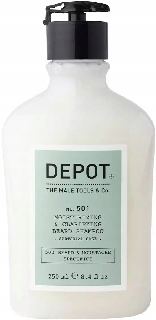 Depot 501 Beard Shampoo – очищающий и увлажняющий шампунь специально для бороды. Содержит мягкие поверхностно-активные вещества без SLES.