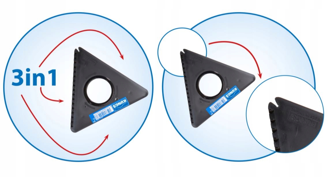 После удаления скребка из ручки у нас есть три острых скребков, которые значительно протягивают срок службы скребка. В скребке также есть разрез, который облегчает очистку стеклоочистителей. Ice Scraper можно легко хранить в боковом кармане двери автомобиля или в отсеке для хранения.