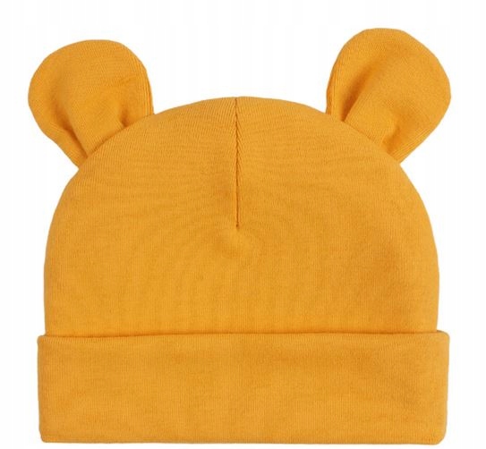 Медовая хлопковая детская шапочка. Мягкий на ощупь, из ребристого хлопка, идеально подходит для весенне-осеннего сезона. Шапка имеет декоративные ушки, ее можно свернуть и подогнать по голове ребенка.