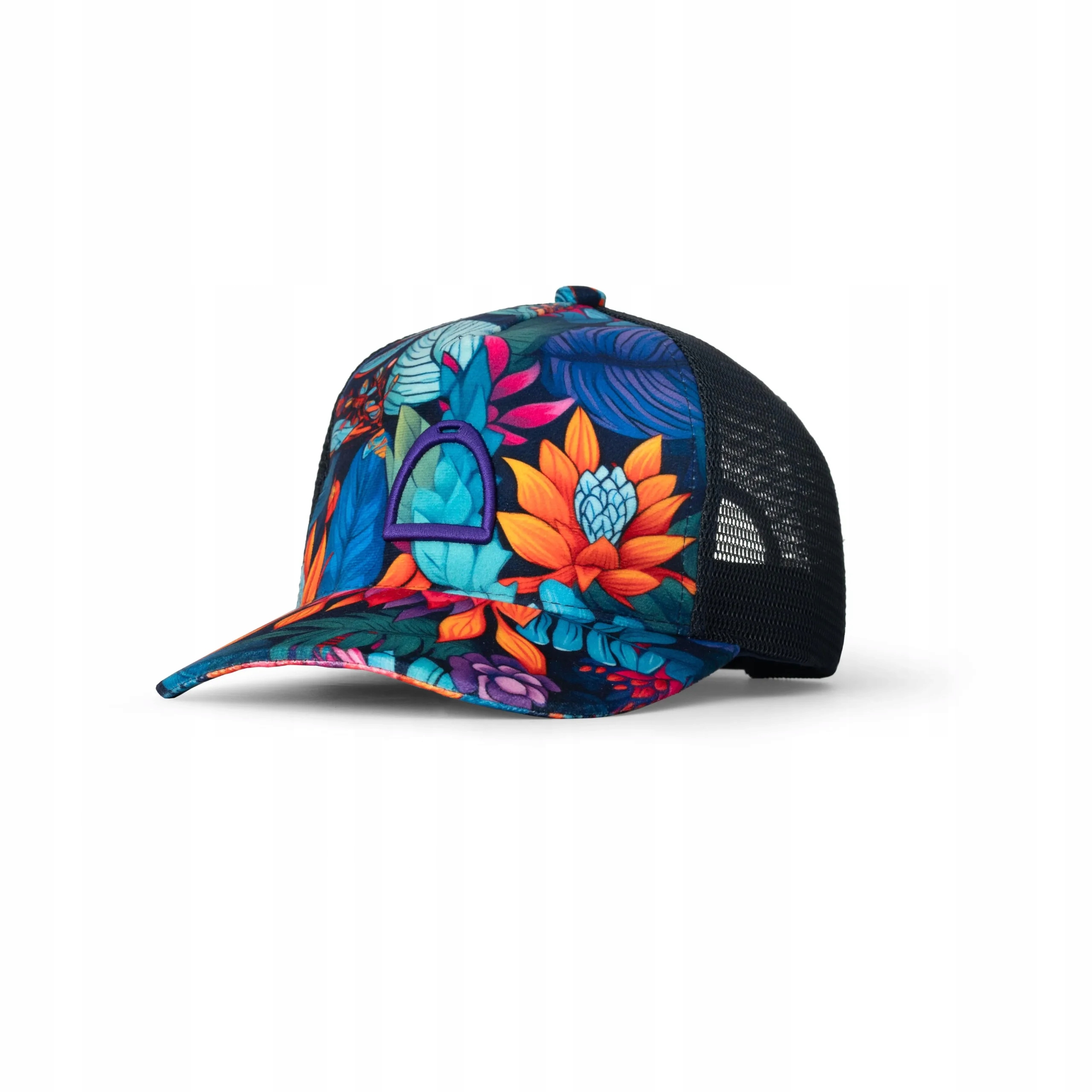Кепка дальнобойщика из коллекции Power Flower — уникальная модель для любителей конного спорта, отличающаяся ярким цветочным принтом, вдохновленным природой, и 3D-вышивкой в форме стремени. Передняя часть шапки и козырек выполнены из прочной бархатной ткани, что придает элегантность и солидность. Задняя часть шапки имеет дышащую сетчатую вставку, которая обеспечивает комфорт даже в теплые дни. Модель доступна в двух размерах: универсальном для взрослых и детей, каждый из них дополнительно имеет регулируемую застежку-кнопку, которая позволяет идеально подогнать шапку по размеру головы.