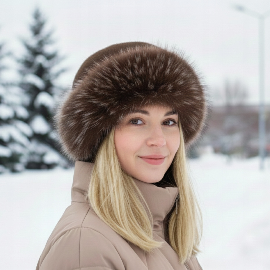 Благодаря эффектной широкой меховой отделке шапка выглядит роскошно, подчеркивая черты лица и добавляя шарма любому образу.