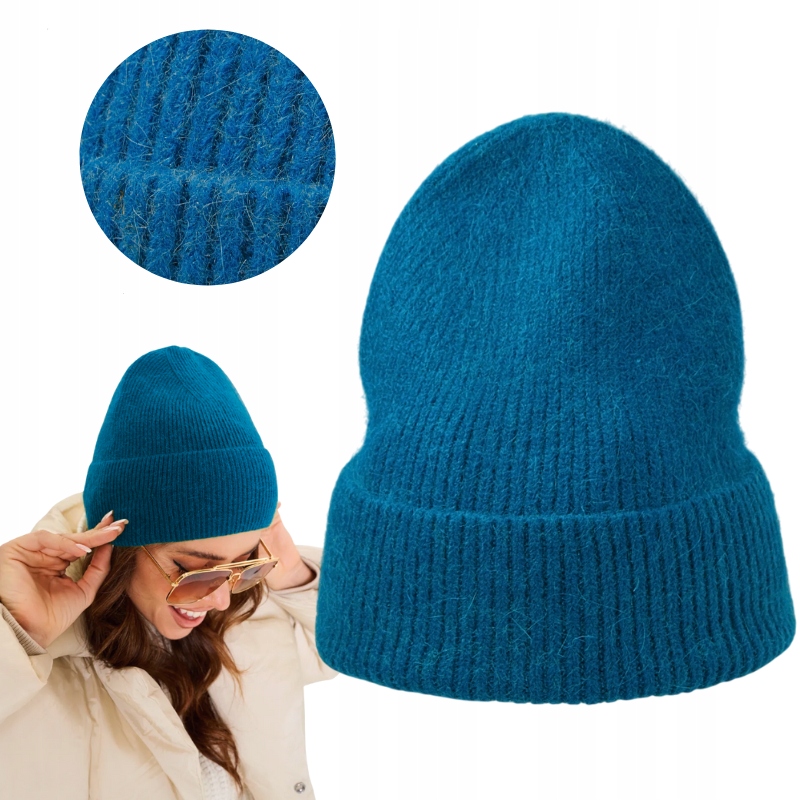 ШАПКА ЖЕНСКАЯ ЗИМНЯЯ, ТЕПЛАЯ, ПЛОТНАЯ, СИНЯЯ, МЯГКАЯ, ЭЛЕГАНТНАЯ АНГОРА