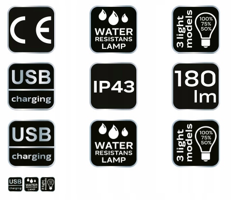 - 3 режима яркости - возможность регулировки интенсивности света: 100%, 75% и 50%.