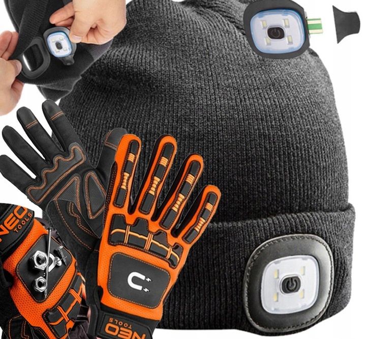 ШЛЯПА С ФОНАРИКОМ + РАБОЧИЕ ПЕРЧАТКИ С МАГНИТОМ 10 NEO Tools