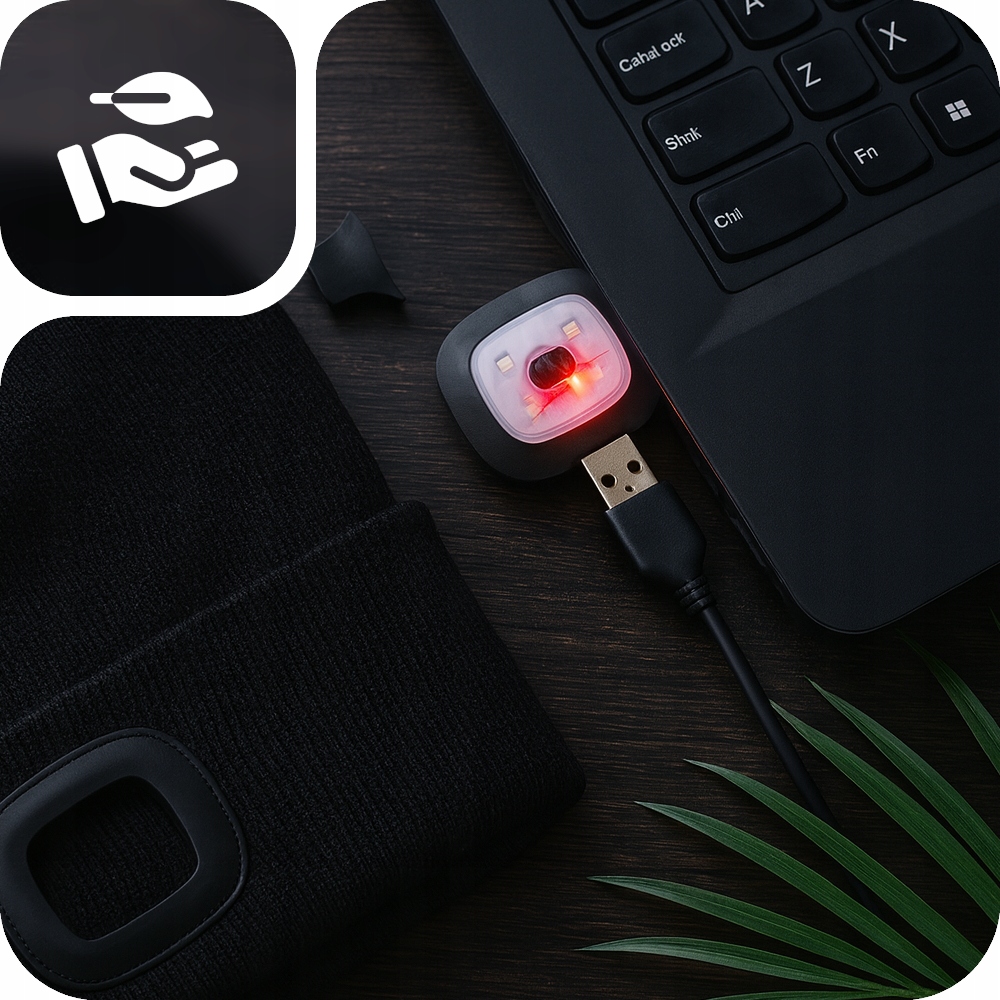 СВЕТОДИОДНАЯ ЗИМНЯЯ ШАПКА С USB ФАКЕЛОМ, ИЗОЛИРОВАННАЯ ДЛЯ РАБОТЫ, СПОРТИВНАЯ, ЧЕРНАЯ ТЕПЛАЯ