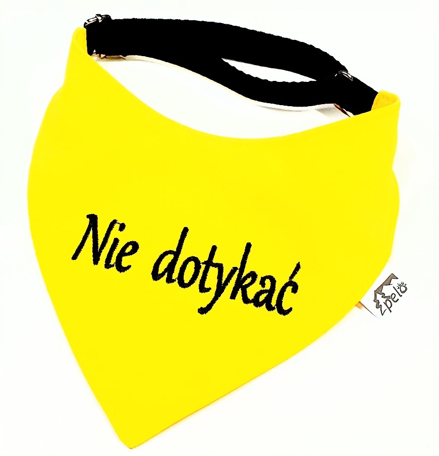 Шарф, бандана для собаки желтого цвета с вышитой надписью: «Не трогать».