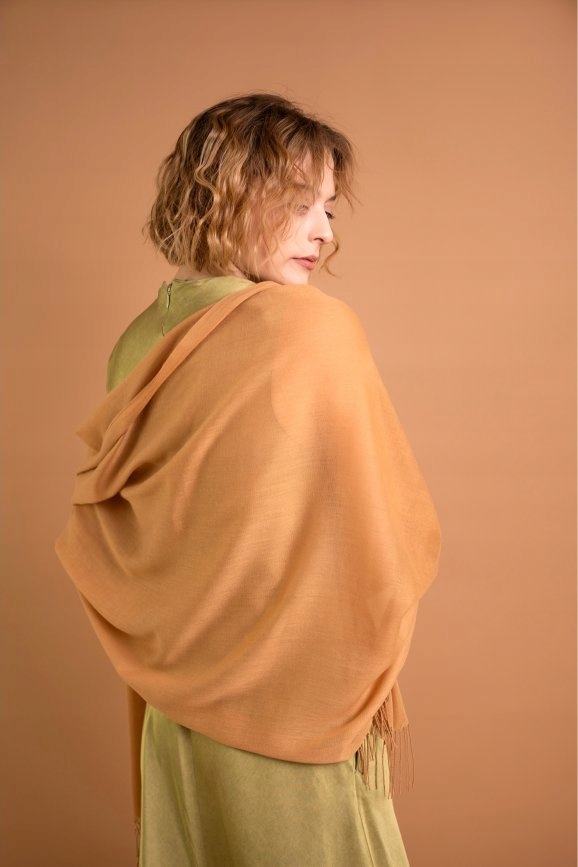 Минималистичный тонкий шарф прямого кроя, отделанный бахромой.