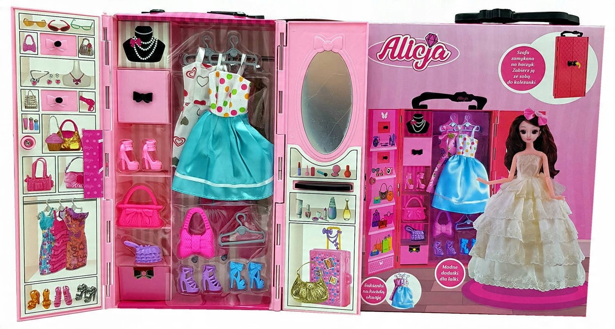 - ГАРДЕРОБ ДЛЯ ОДЕЖДЫ ПЛАТЬЯ ДЛЯ КУКЛ ЧЕМОДАН+КУКЛА